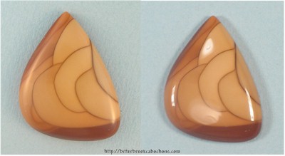 Big & beautiful Bruneau Jasper designer cabochon! This one has nice clear patterns in several shades. Gloria at Wire Treasures wire wrapped this cab into a pendant; you can see it here! 38mm x 27mm x 6mm. Weight: 47.80 carats. Every one of my cabochons is custom cut to take the best advantage of the particular slab from which it is fashioned. Colors may vary somewhat from what is pictured due to differences in computer monitors. Click the image on the right to see the cabochon super-sized... Do you like Bruneau Jaspers? Click here to see all of the Bruneau Jaspers on the site! |