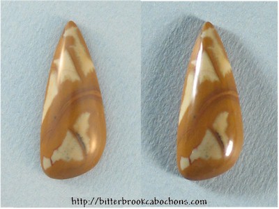 Small Owyhee designer cabochon. Not much color; an almost invisible red line across the middle is about it. But a cute small cab regardless. 34mm x 14mm x 6mm. Weight: 19.45 carats. Every one of my cabochons is custom cut to take the best advantage of the particular slab from which it is fashioned. Colors may vary somewhat from what is pictured due to differences in computer monitors. Click the image on the right to see the cabochon super-sized... Do you like Owyhee Jaspers? Click here to see all of the Owyhee Jaspers on the site! |