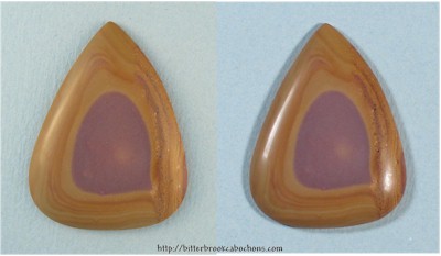 Rhyolite with a purple center. Looks like saltwater taffy... maybe? 37mm x 28mm x 4mm. Weight: 34.75 carats. Every one of my cabochons is custom cut to take the best advantage of the particular slab from which it is fashioned. Colors may vary somewhat from what is pictured due to differences in computer monitors. Click the image on the right to see the cabochon super-sized... Do you like Rhyolites? Click here to see all of the Rhyolites on the site! |